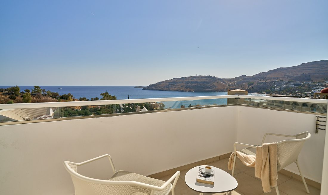 Lindos Village Resort & Spa offers the unique Double Panoramic Sea View rooms where luxury and comfort meets simplicity and serenity, while the awe-inspiring sea view captivates your mind. These luxurious rooms feature a spacious double bed or twin beds, the eclectic interiors are designed with a subtle, earthy colour palette with modern amenities, whereas the ultra-furnished terrace or balcony offers exceptional view of the charming Vlycha Bay.